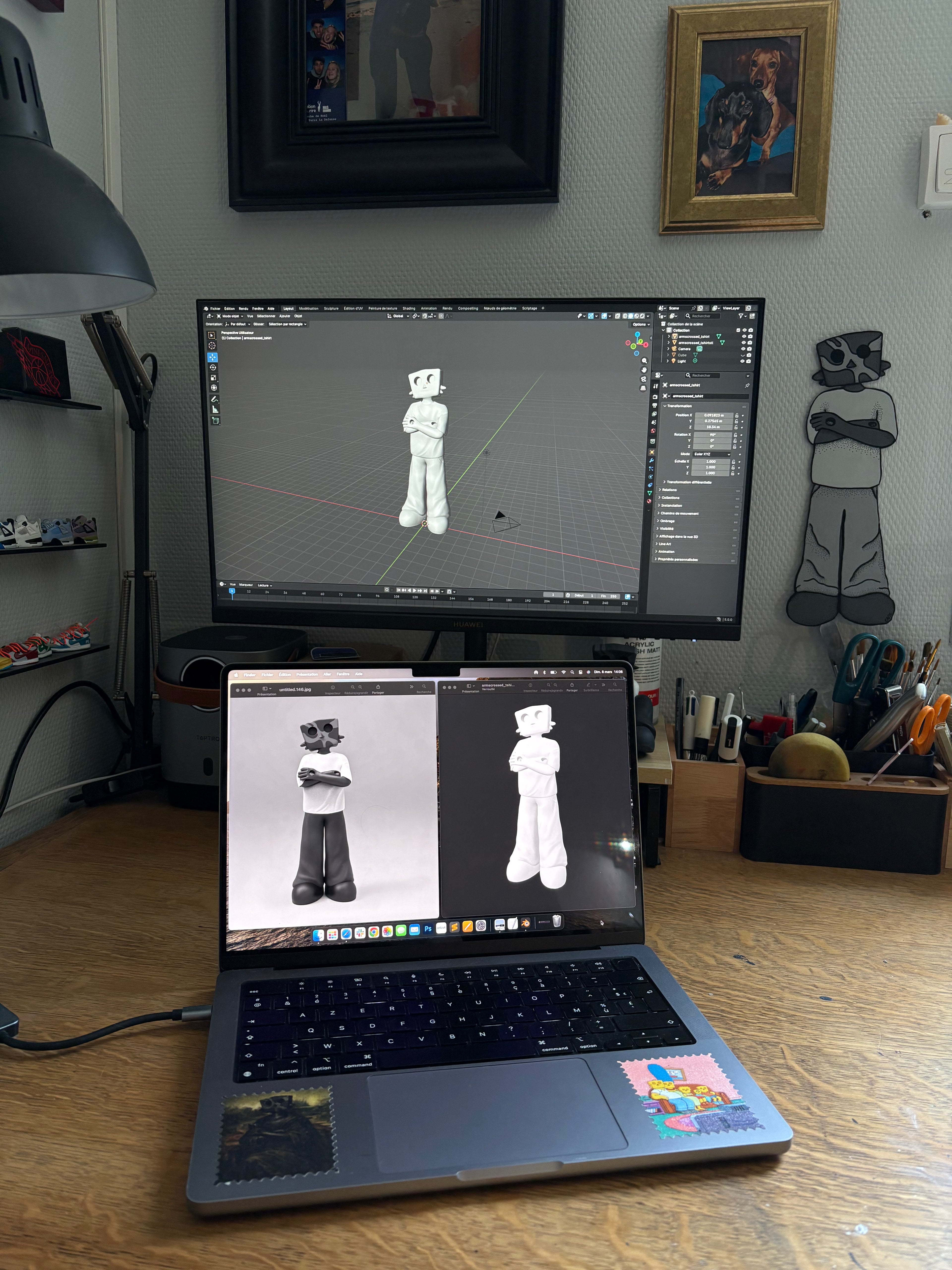 Je commence par modéliser chaque personnage et chaque objet en 3D, ce qui me permet de donner vie à des formes uniques et précises.